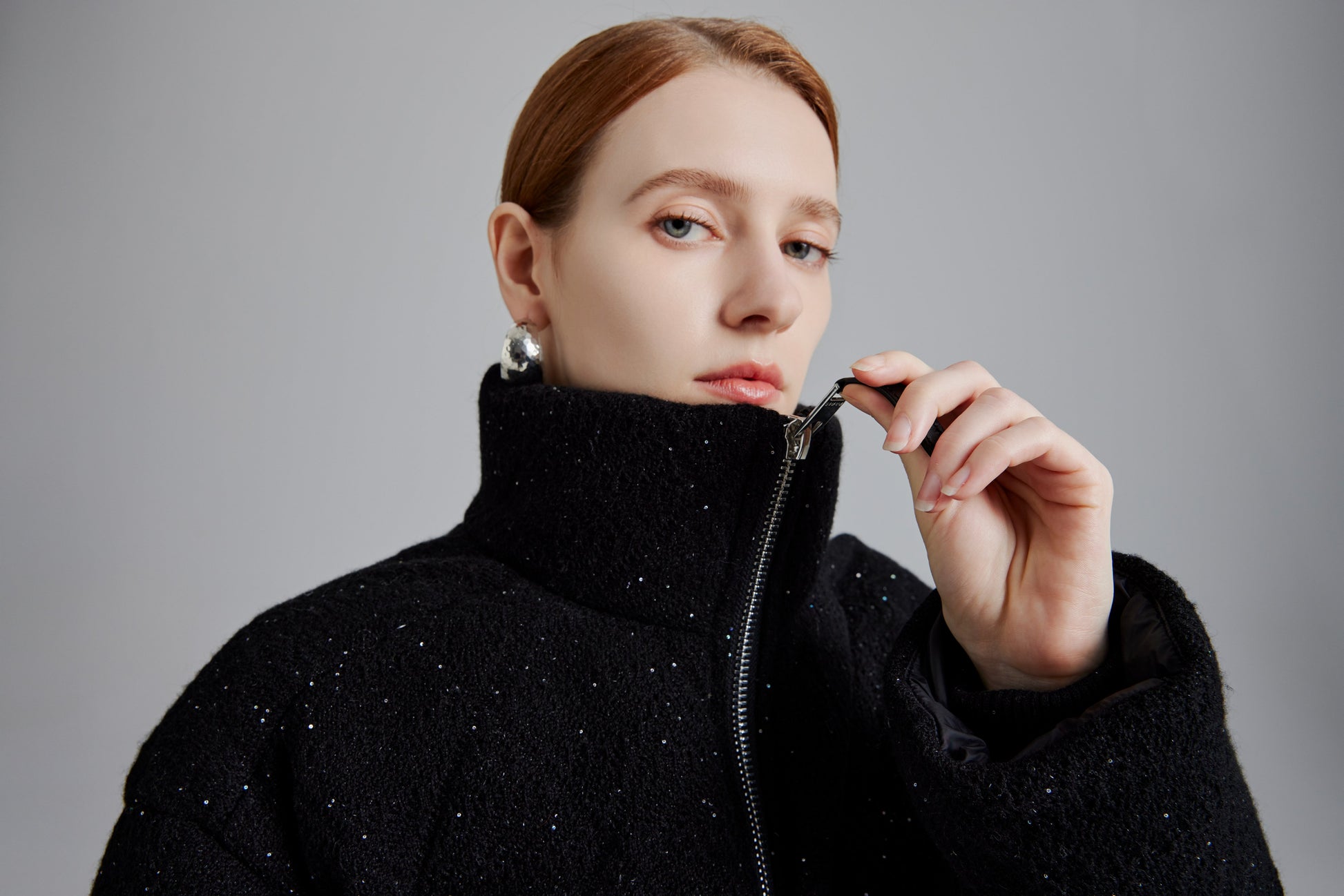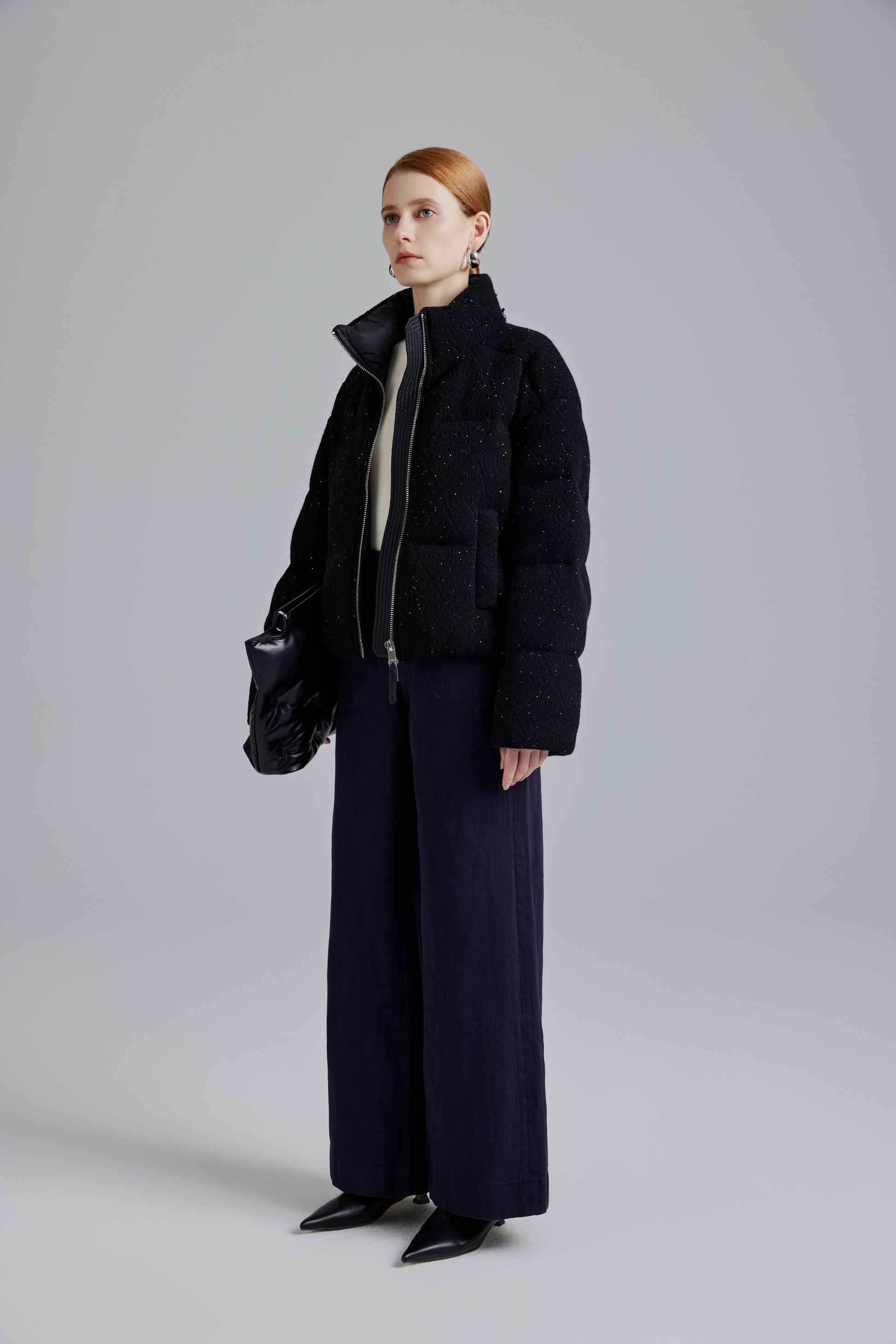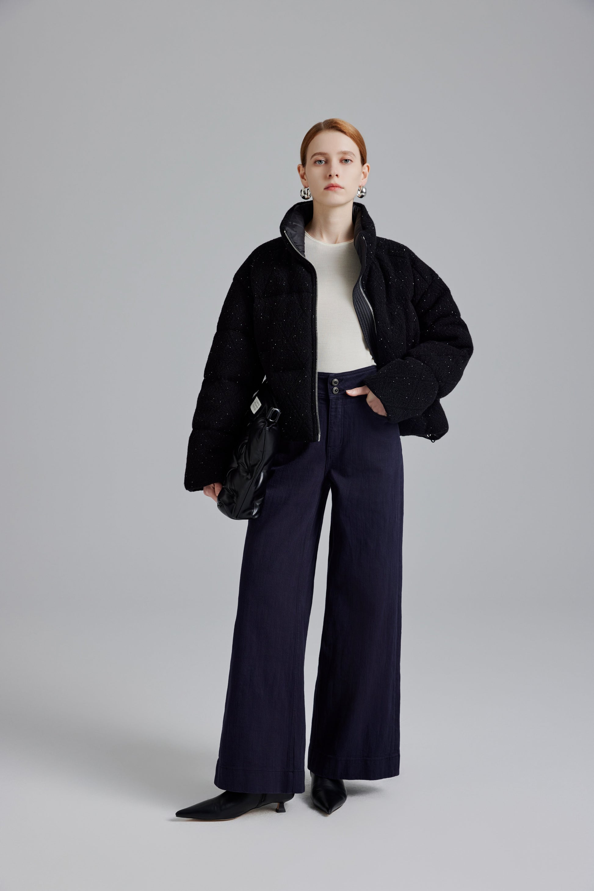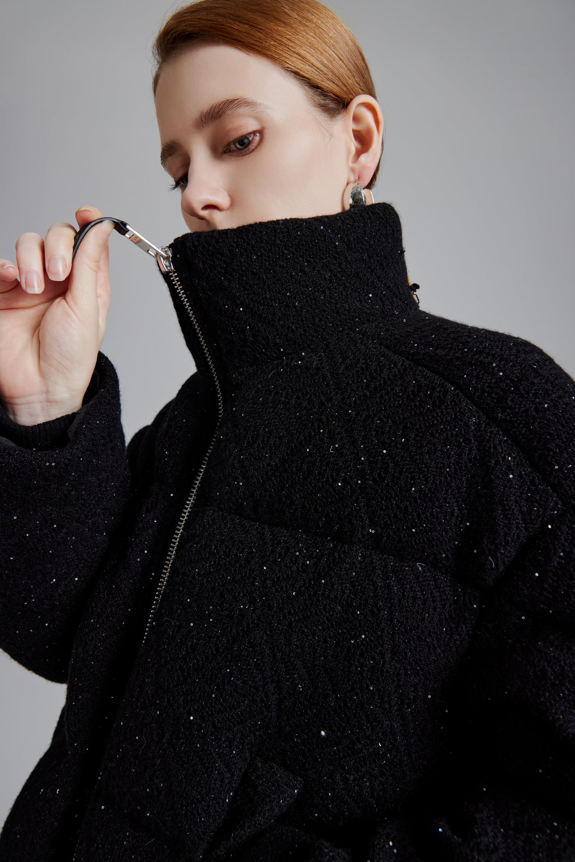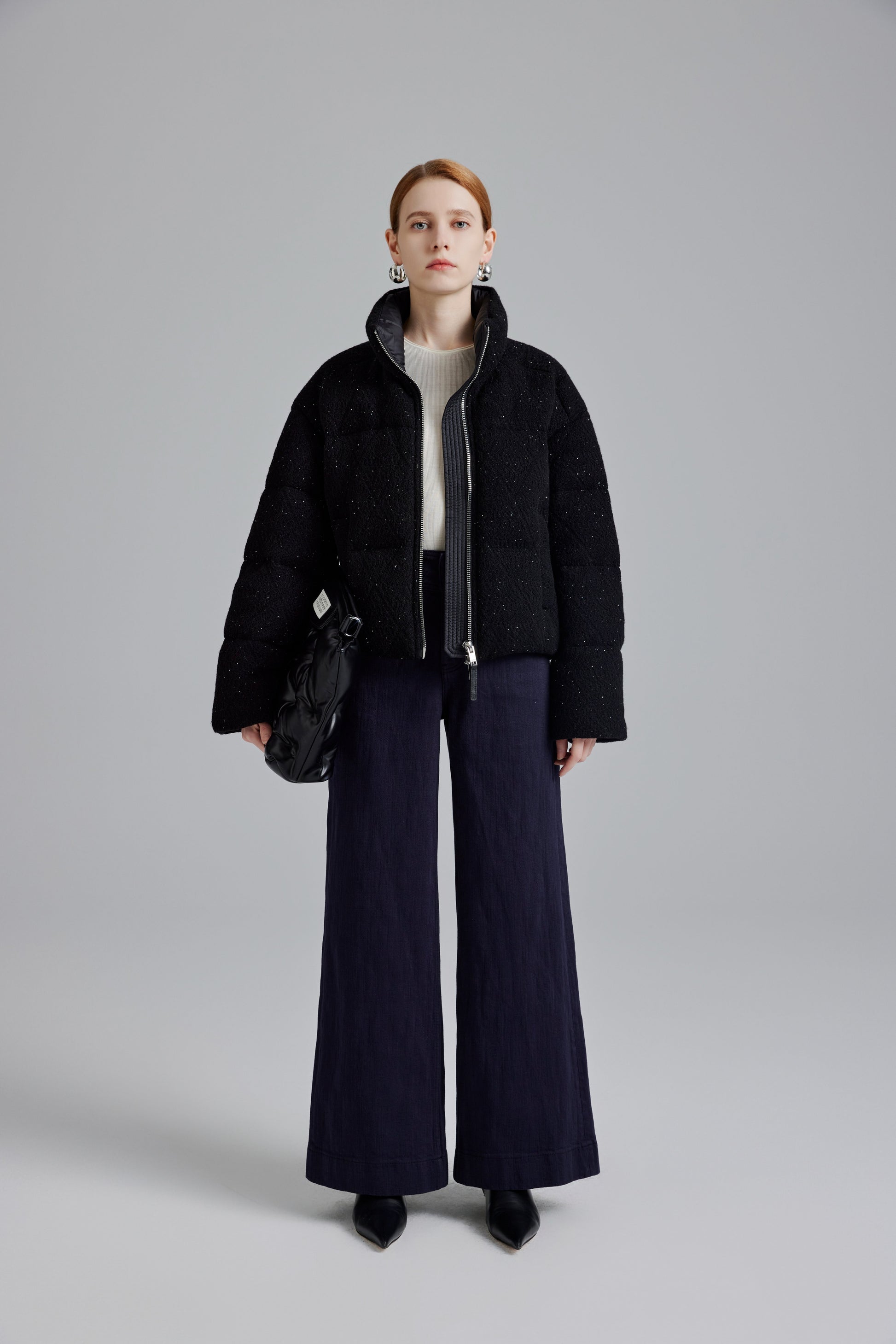 Elevate your winter wardrobe with our Ivory White Plush Velvet Goose Down Jacket