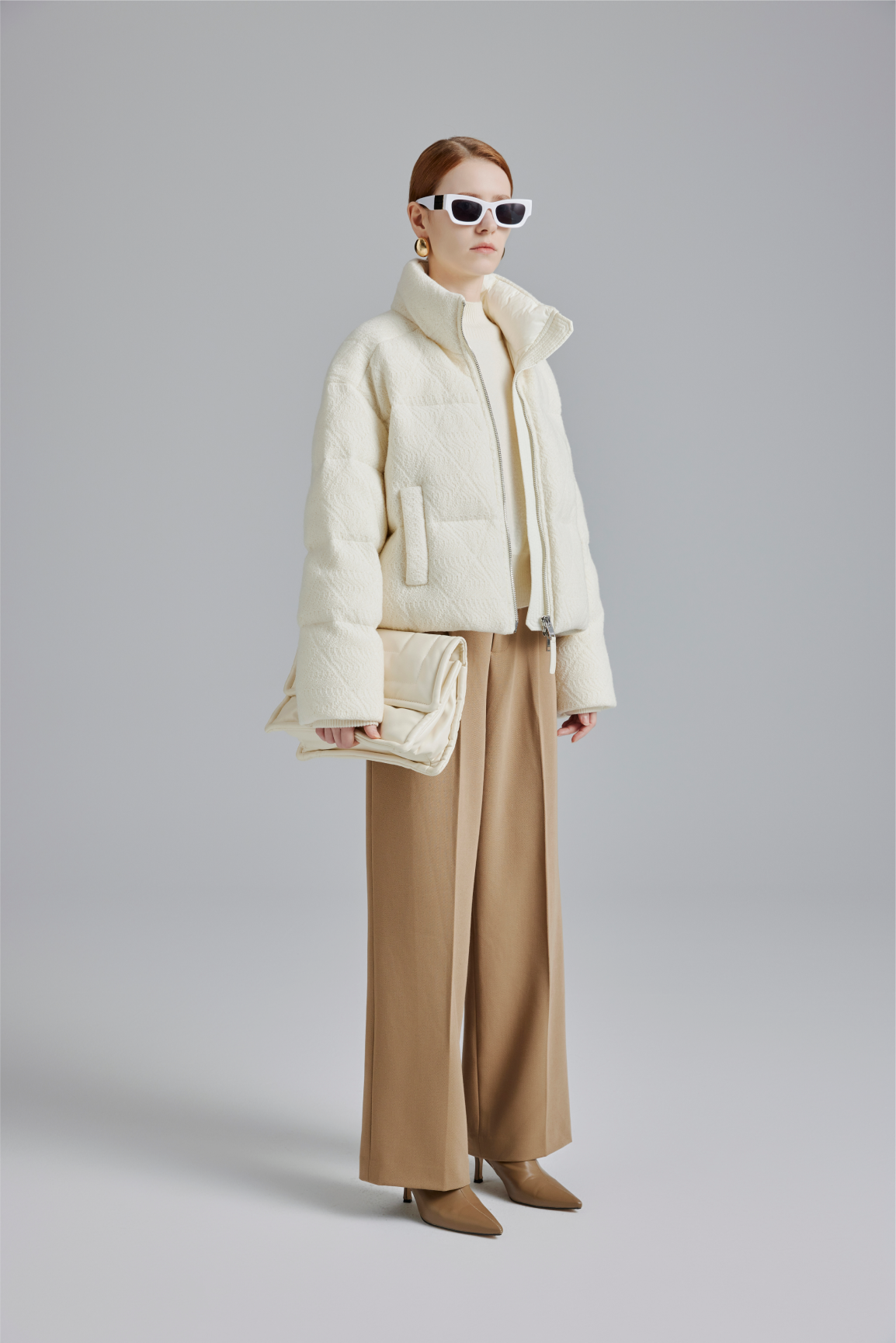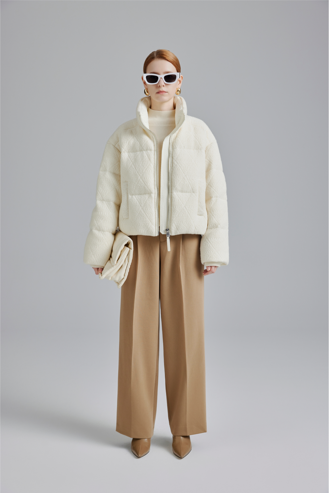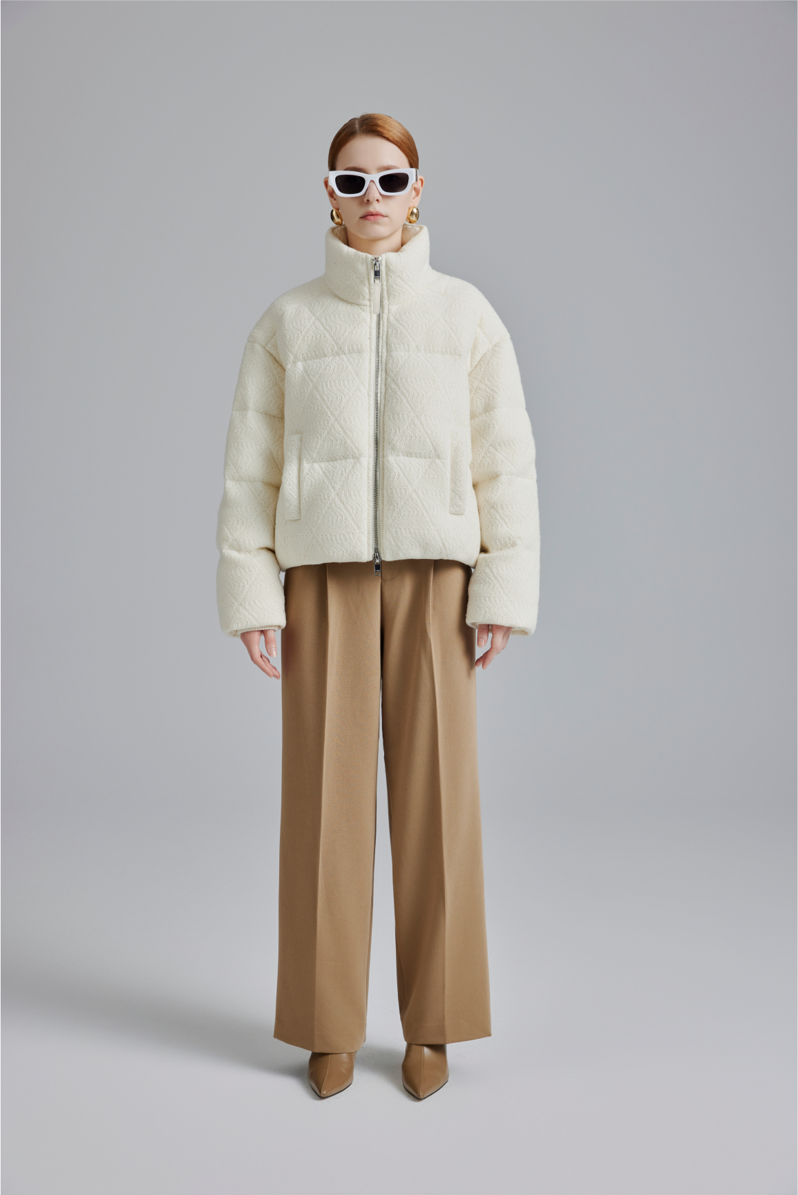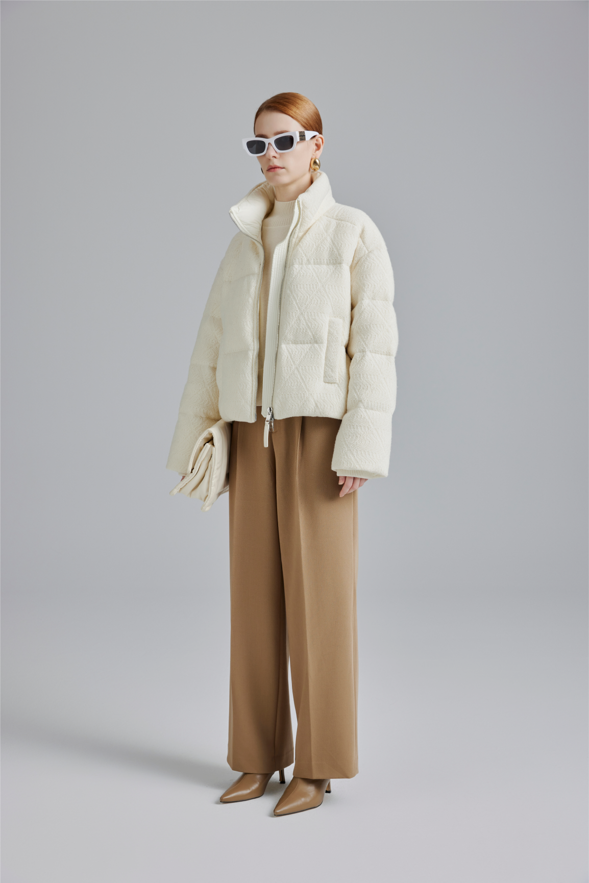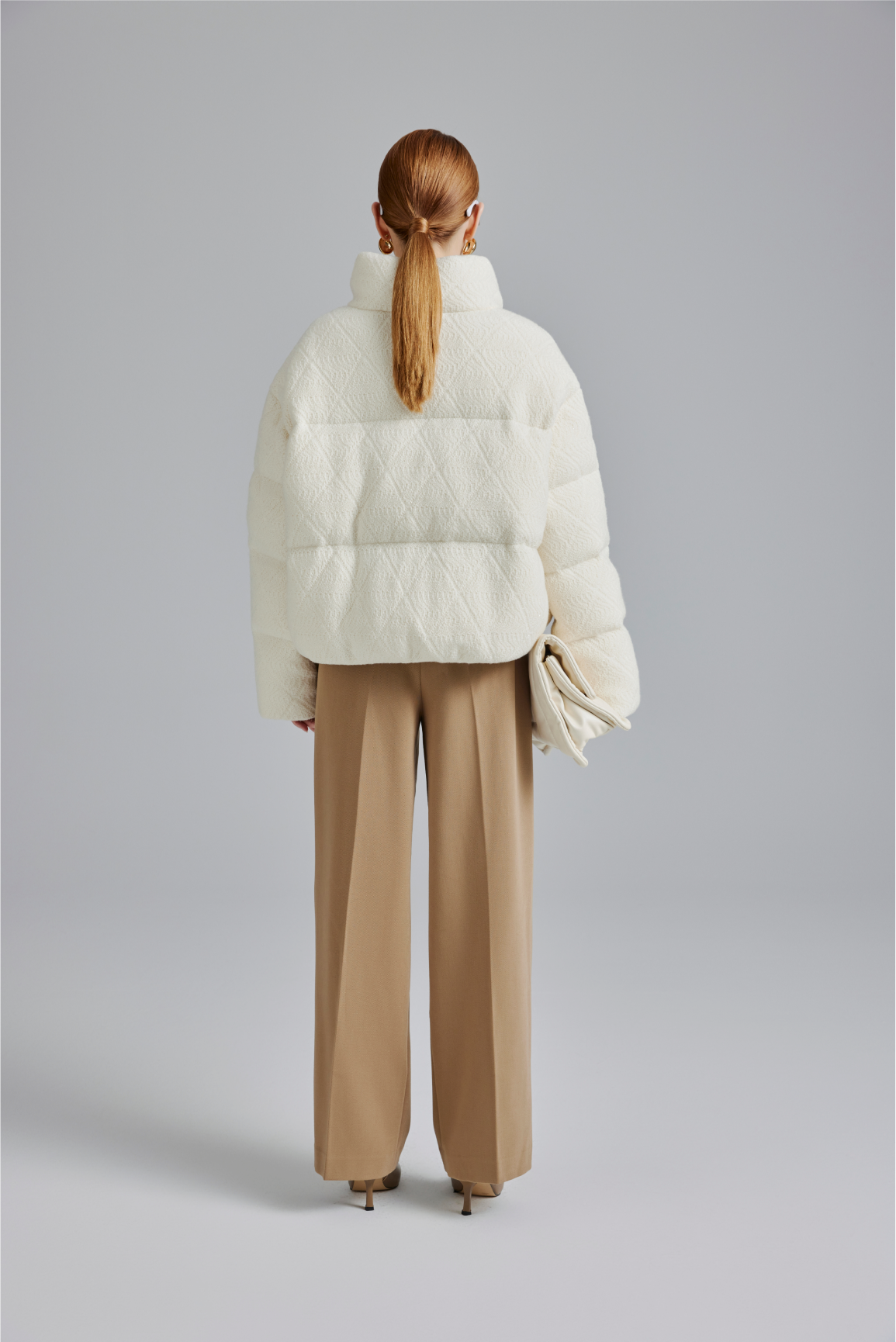 Elevate your winter wardrobe with our Ivory White Plush Velvet Goose Down Jacket