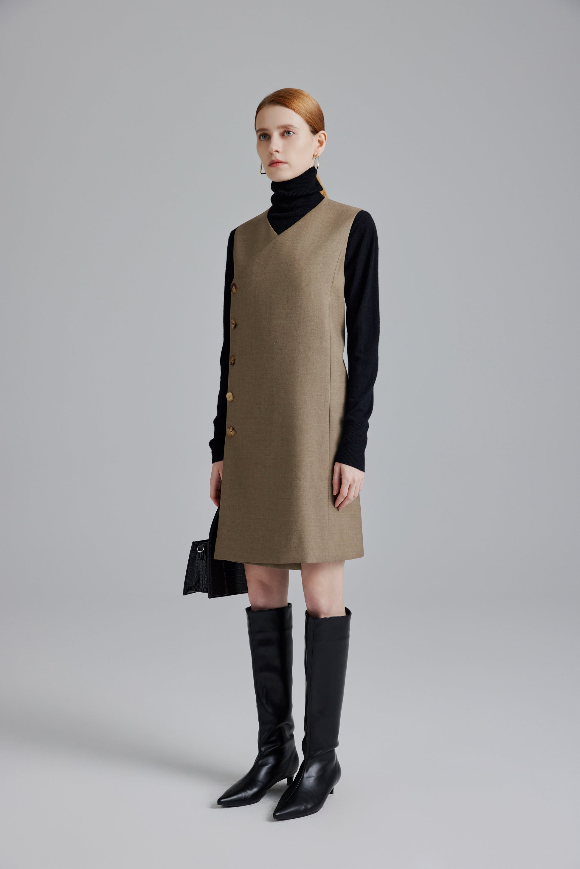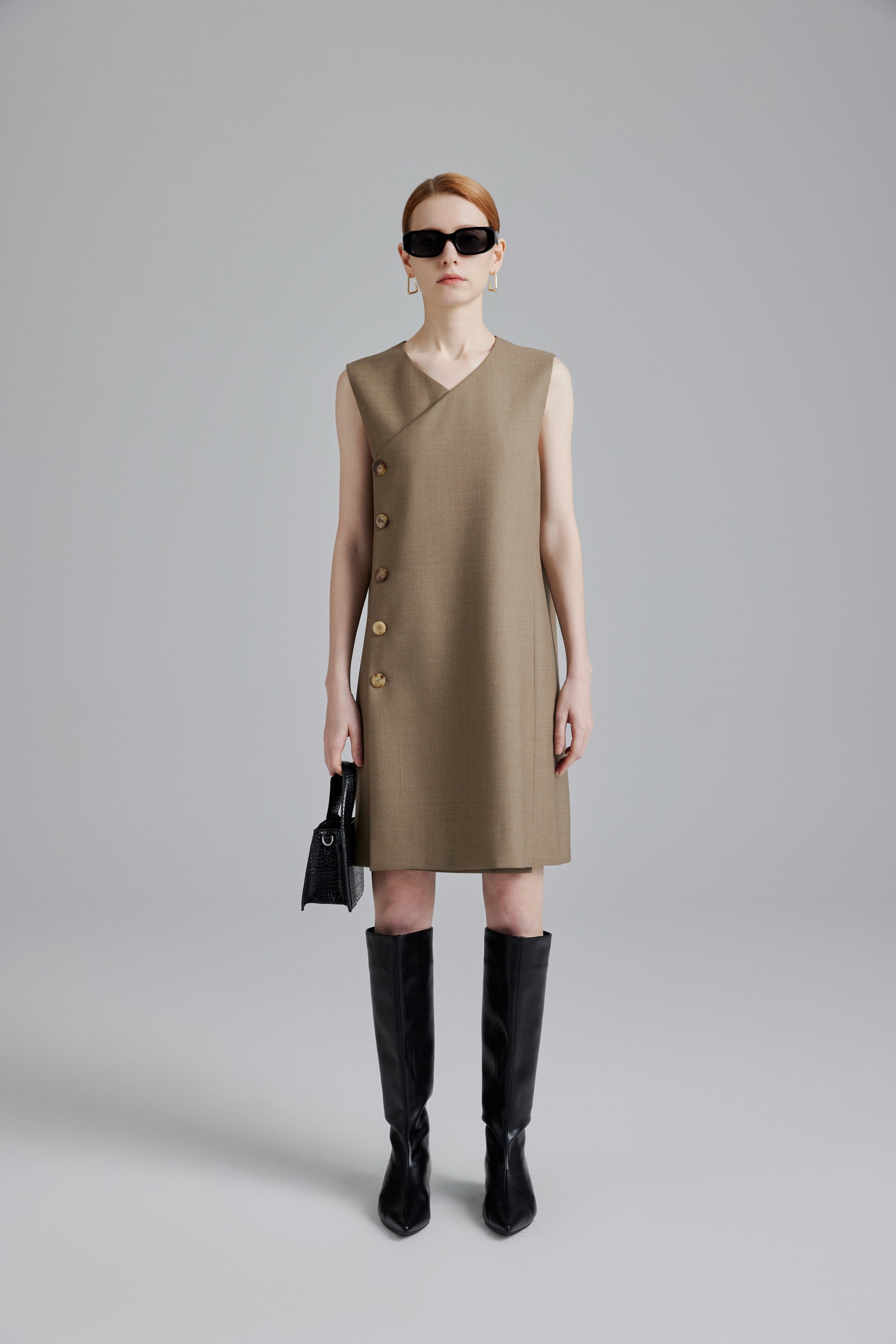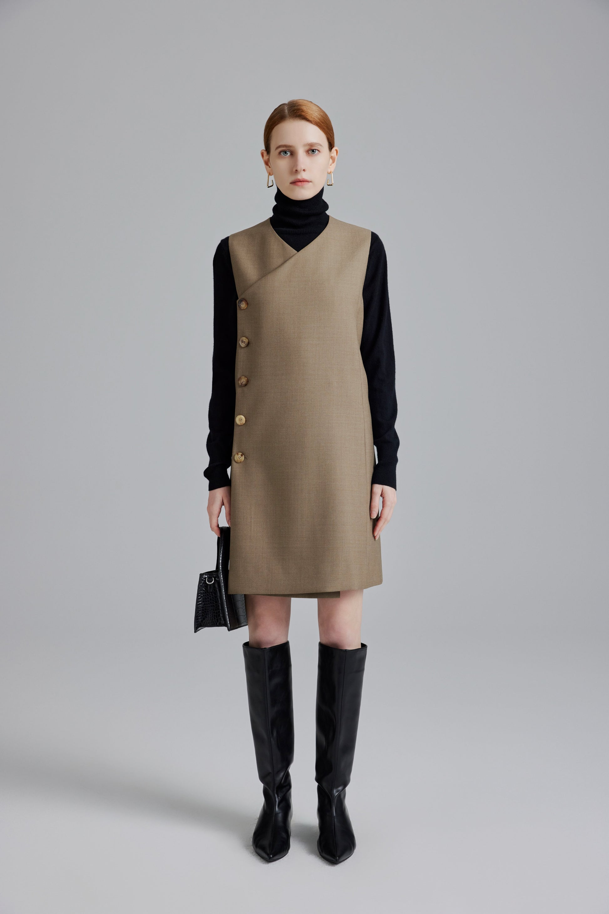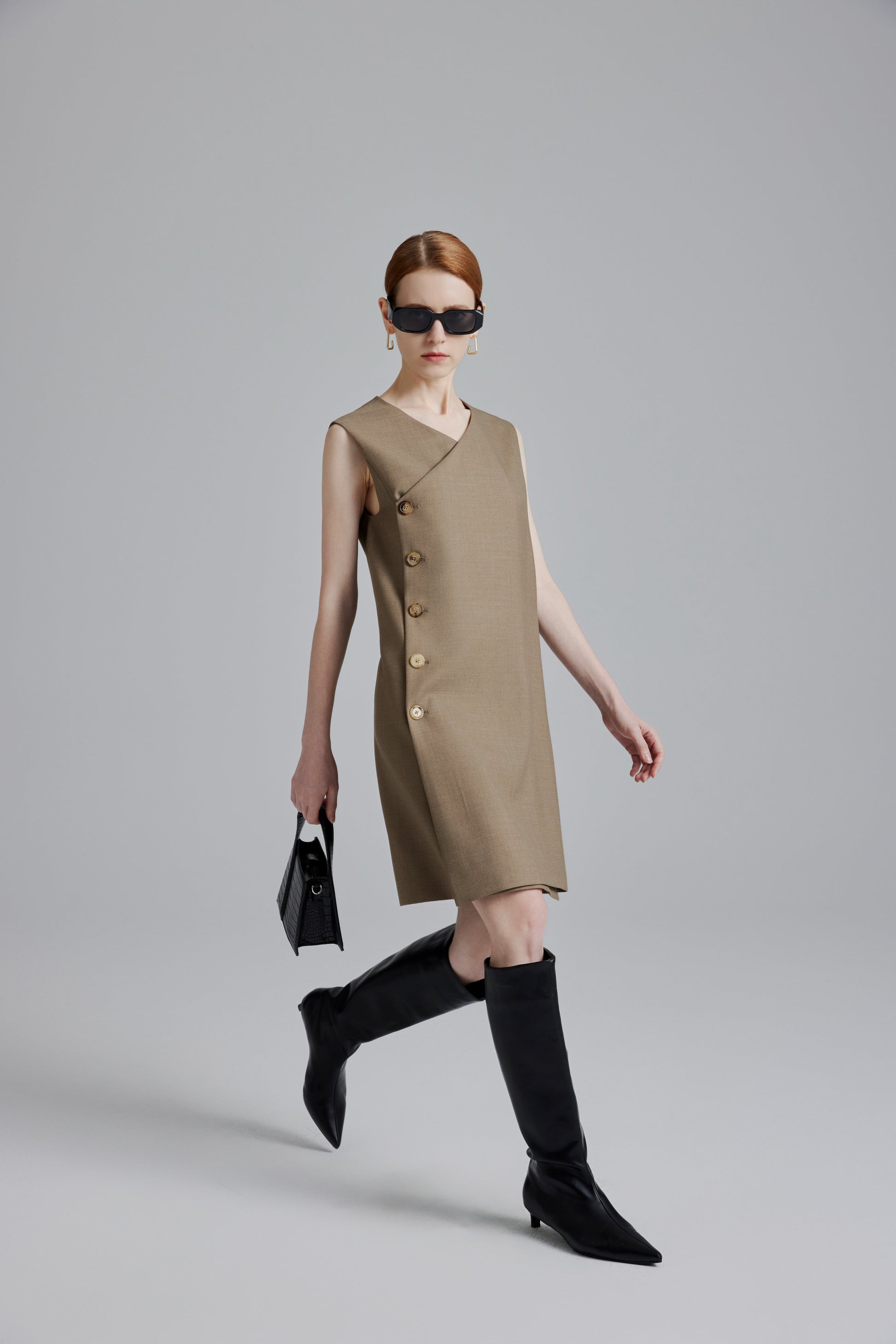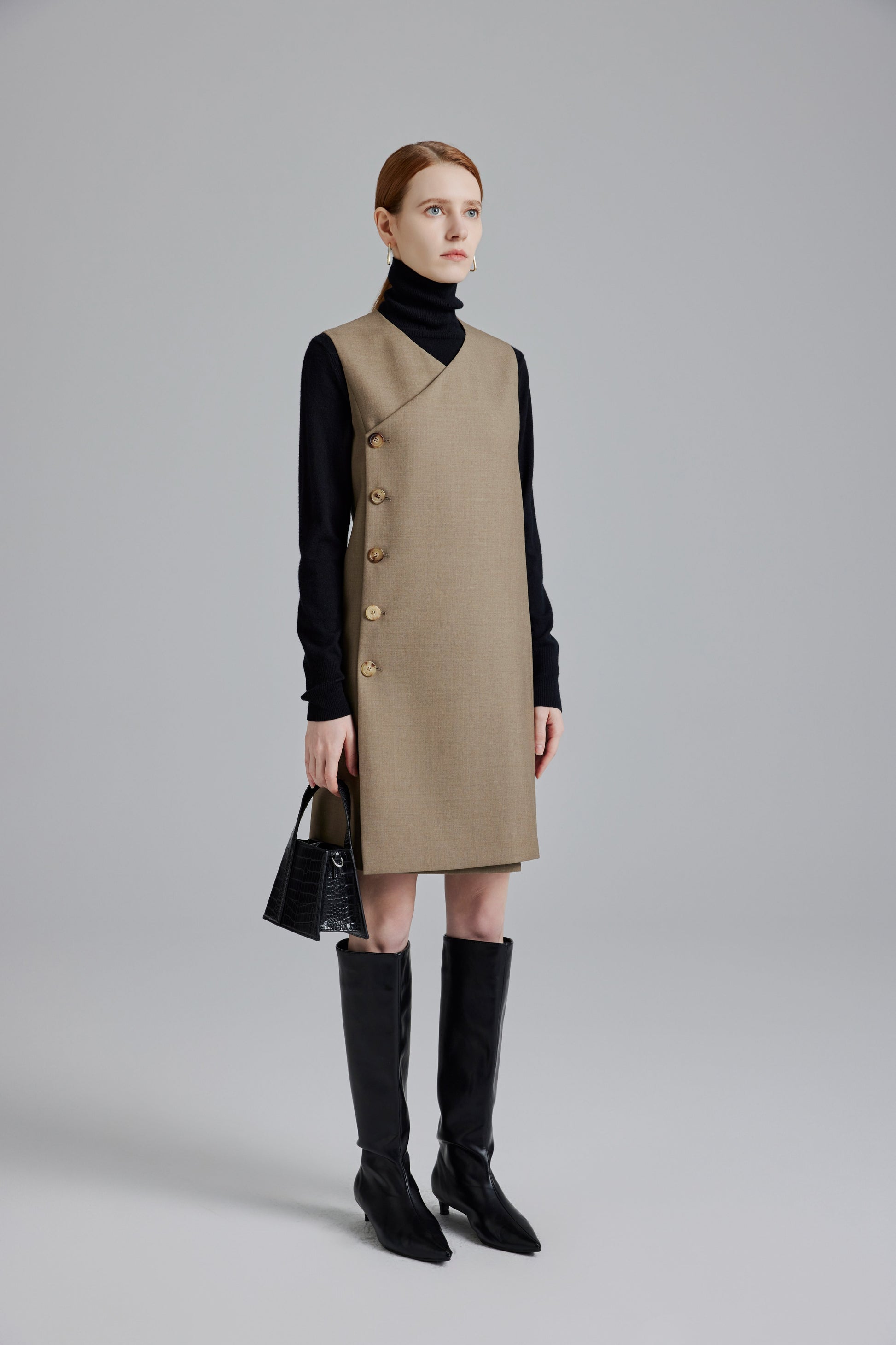 • Cross-Over Asymmetrical Placket, Customized Button Accents